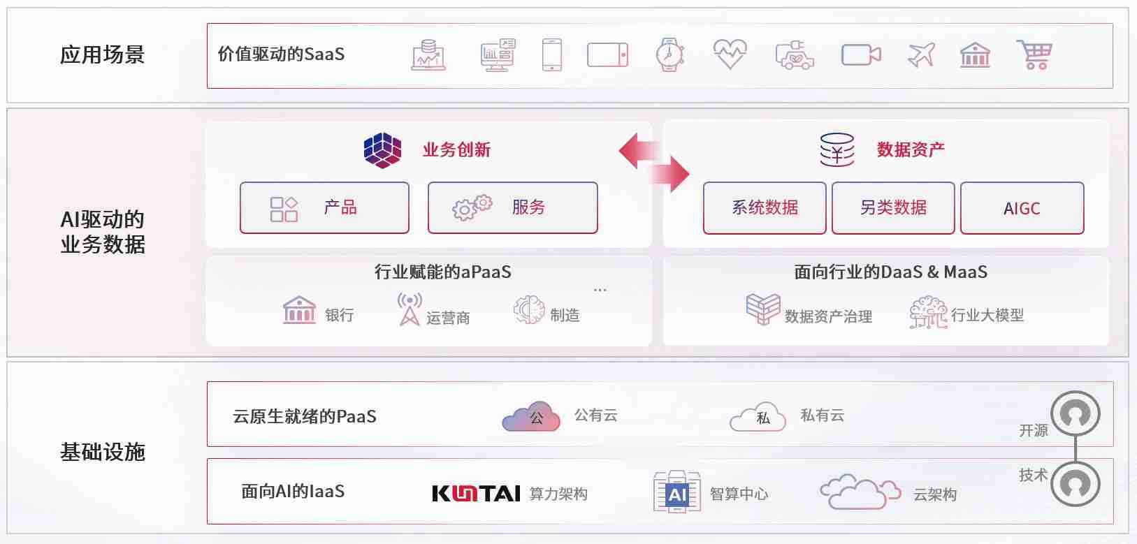 数字时代,,,,围绕企业数字化转型的关键要素,,人生就是搏数码开创性的提出数云融合战略和技术体系框架,,,,着力在云原生、、数字原生、、、、AI原生和信创产业上架构产品和服务能力,,,为处在不同数字化转型阶段的快消零售、、、、汽车、、金融、、、医疗、、、、政企、、、教育、、、运营商等行业客户提供泛在的敏捷IT能力和融合的数据驱动能力,,,,构建跨界融合创新的数字业务场景和新业务模式,,助力企业级客户建立面向未来的核心能力和竞争优势,,,,全面推动社会的数字化、、、、智能化转型升级。。